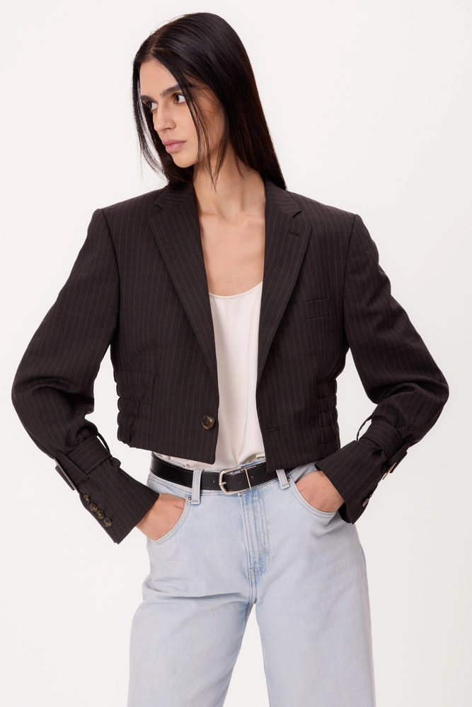 BLACK FITTED PETITE BLAZER WITH PINSTRIPE MODEL No. 5