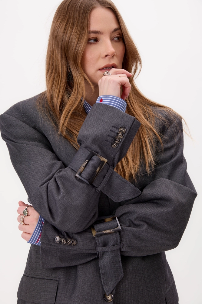 GRAY SLIM FIT BLAZER WITH BUCKLES MODEL No6