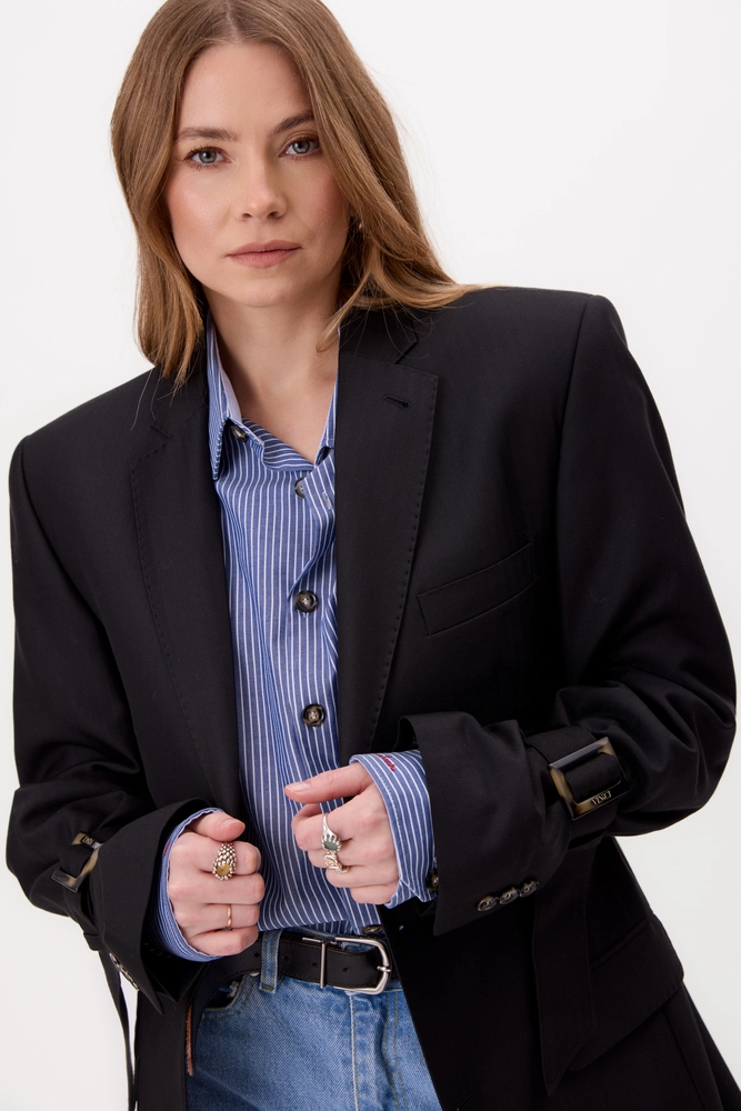 BLACK SLIM FIT BLAZER WITH BUCKLES MODEL No6