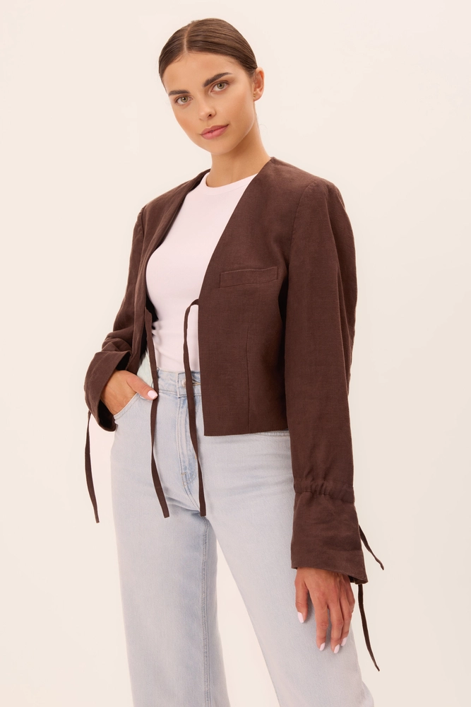 BROWN SHORT STRAIGHT JACKET WITH TIES