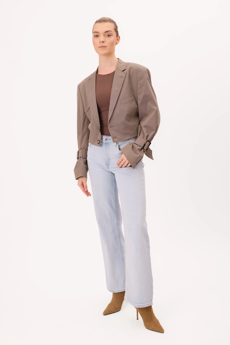 BEIGE FITTED JACKET No5 WITH STRONG SHOULDER AND ADJUSTABLE WAIST