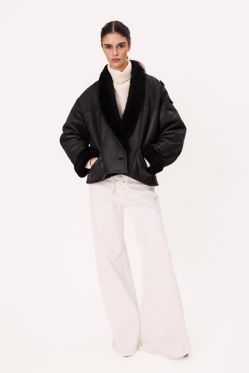 This sheepskin is a carefully selected gem from the second-hand market. Its unique, timeless cut makes it a one-of-a-kind piece in the world. Made entirely of natural sheepskin.