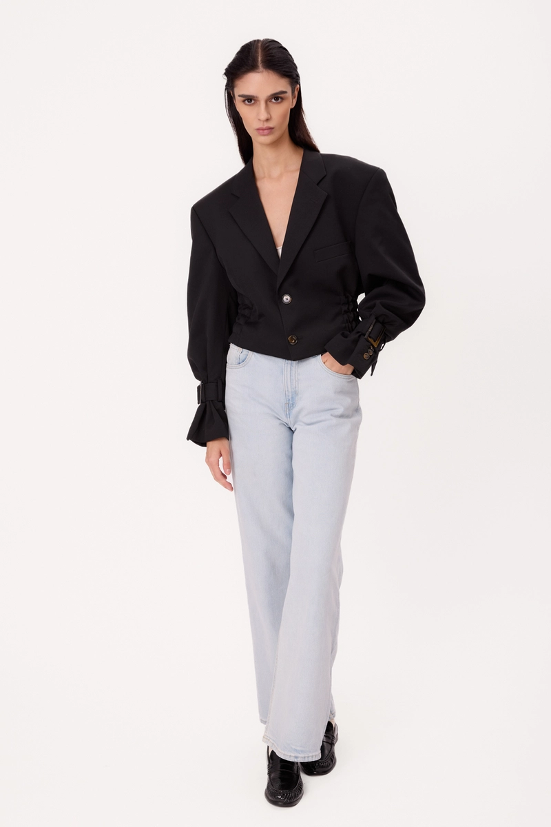 BLACK SMOOTH FITTED REGULAR JACKET WITH BUCKLES MODEL No5