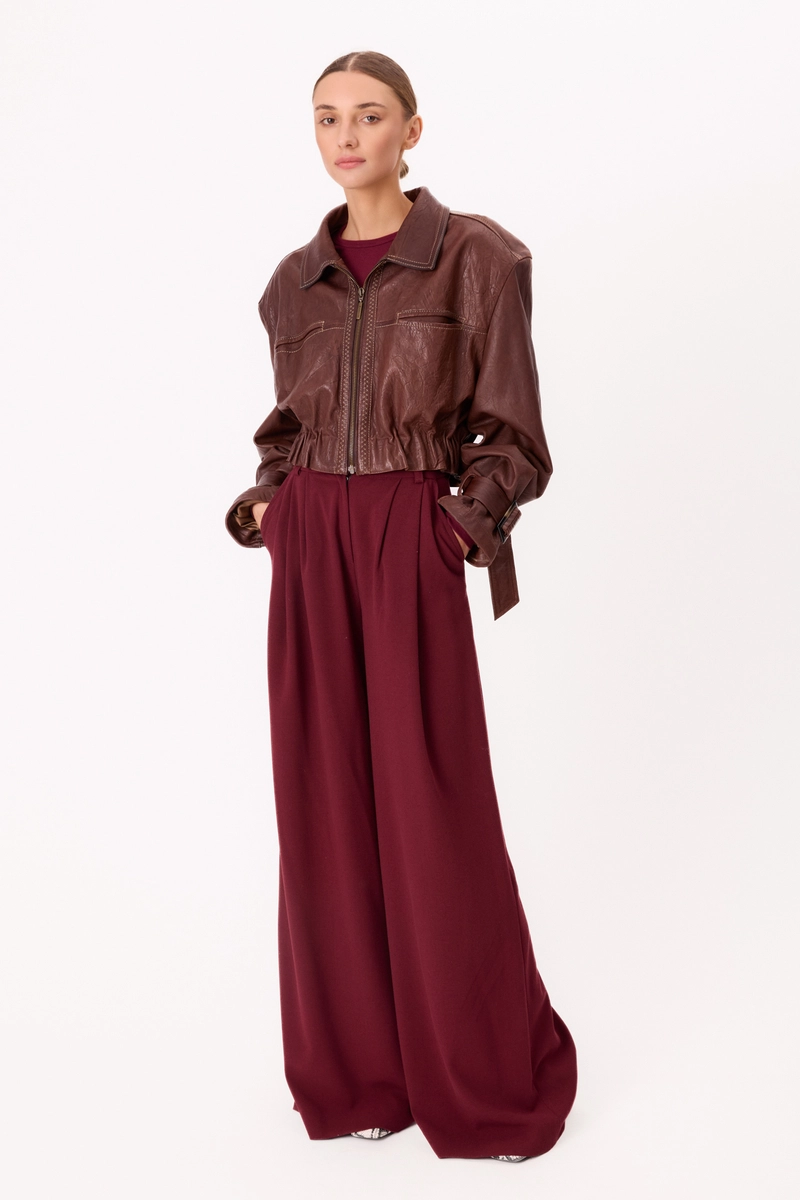 BROWN LEATHER JACKET WITH BUCKLES