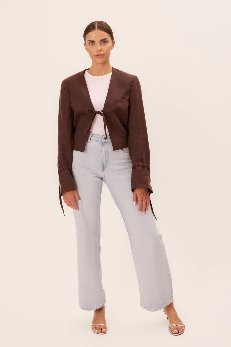BROWN SHORT STRAIGHT JACKET WITH TIES
