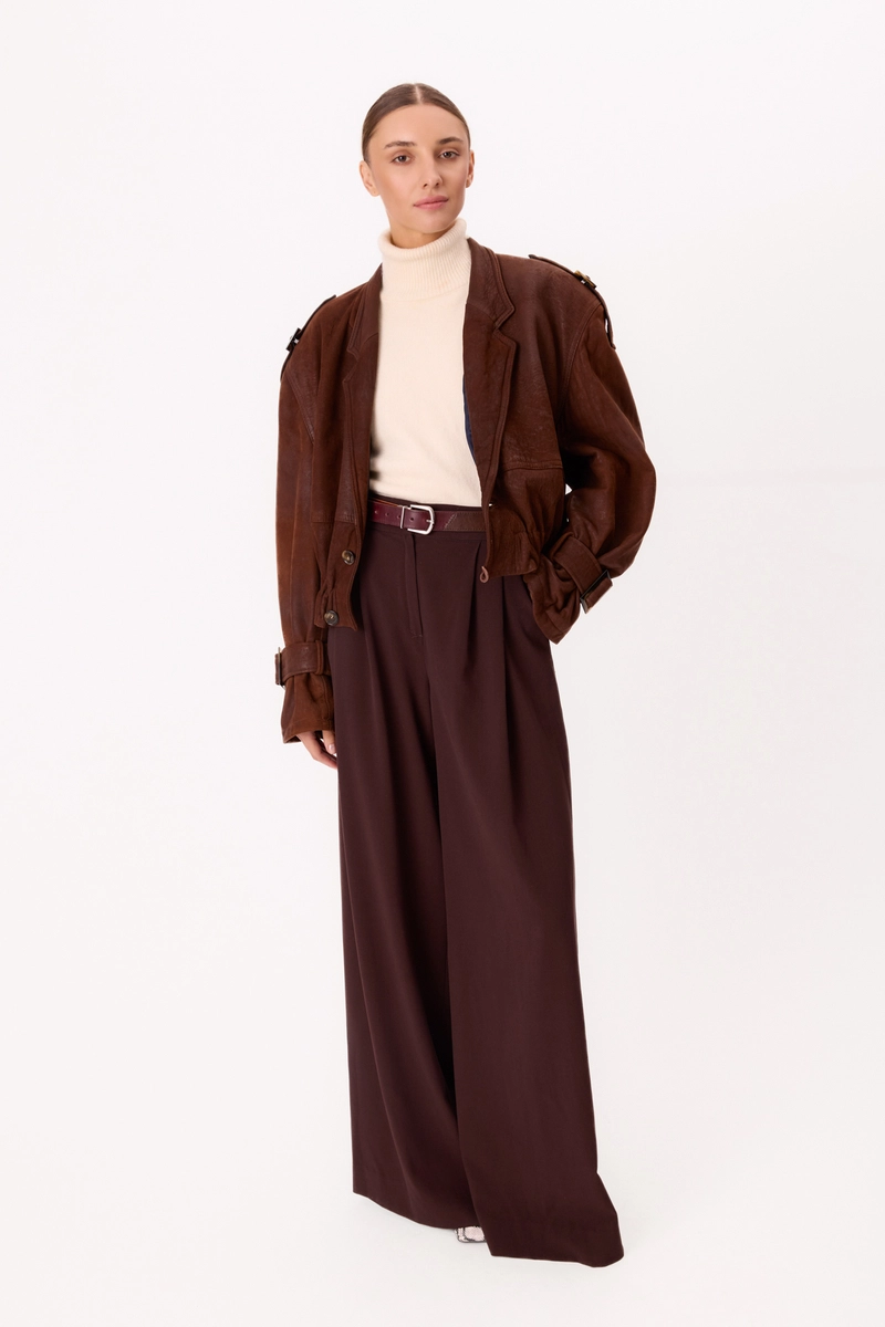 BROWN SUEDE LEATHER JACKET WITH BUCKLES