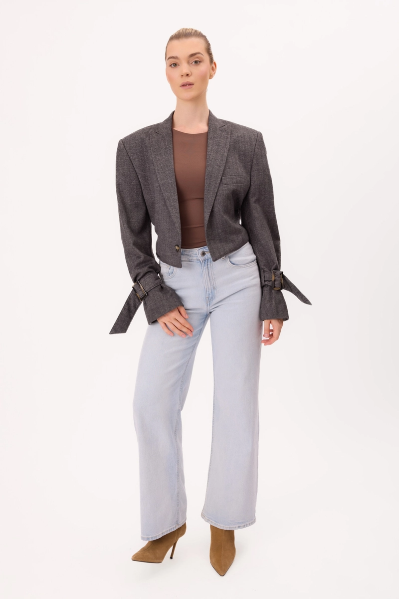 GRAY FITTED JACKET No5 WITH STRONG SHOULDER AND ADJUSTABLE WAIST