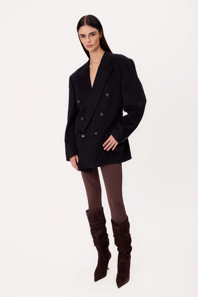 LONG DOUBLE-BREASTED NAVY BLUE CASHMERE JACKET MODEL No4