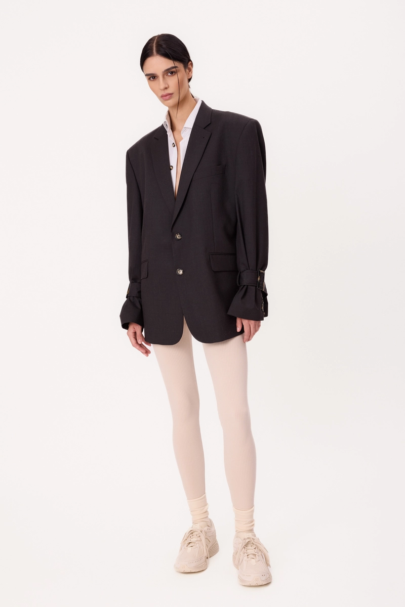 LONG GRAPHITE JACKET WITH ADJUSTABLE WAIST AND BUCKLES MODEL No6