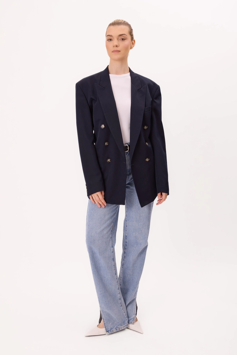 LONG NAVY BLUE SMOOTH DOUBLE-BREASTED JACKET MODEL No4