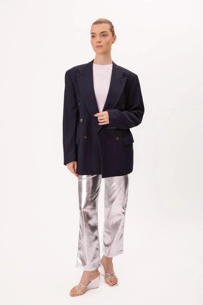 LONG NAVY BLUE SMOOTH DOUBLE-BREASTED JACKET MODEL No4