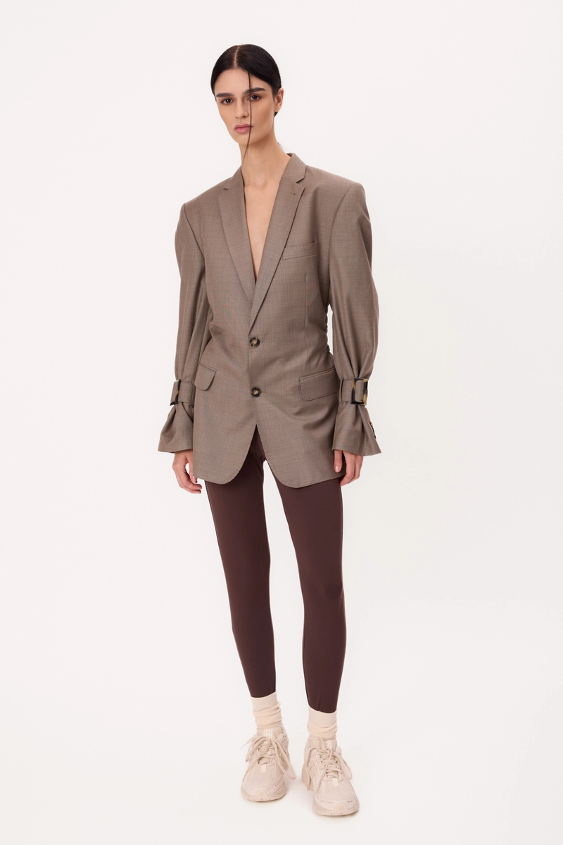 LONG WAISTED BEIGE REGULAR BLAZER WITH BUCKLES MODEL No6