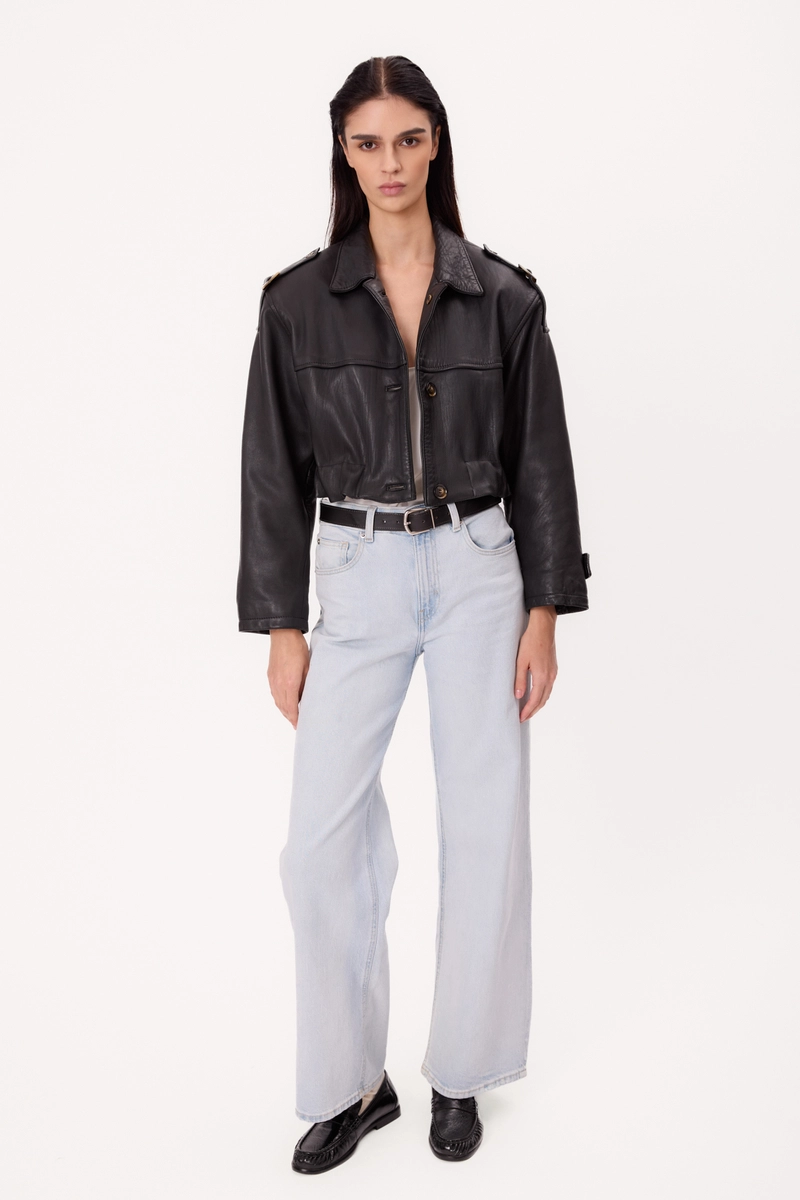 SHORT BLACK ADJUSTABLE WAIST PETITE LEATHER JACKET