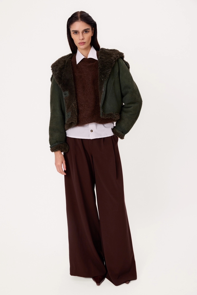 SHORT DARK GREEN NATURAL SHEEPSKIN