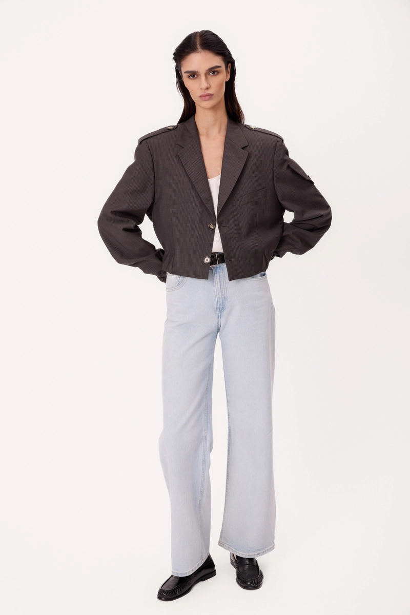 SHORT GRAY STRIPED REGULAR BOMBER JACKET
