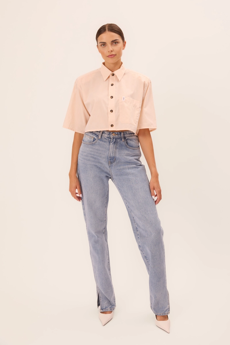 SHORT PEACH SHIRT WITH A DELICATE STRIP WITH DETACHABLE WIDE PADS