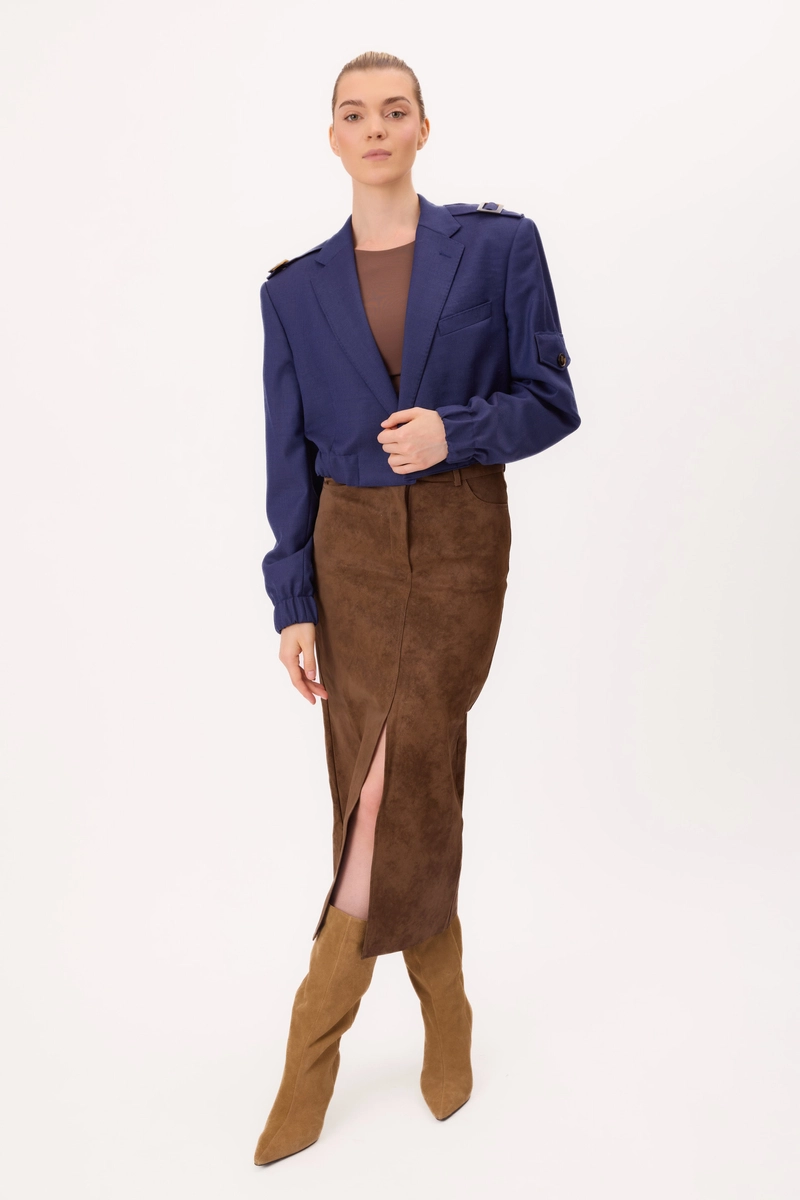 SHORT PLAIN CORNFLOWER BLUE BOMBER JACKET