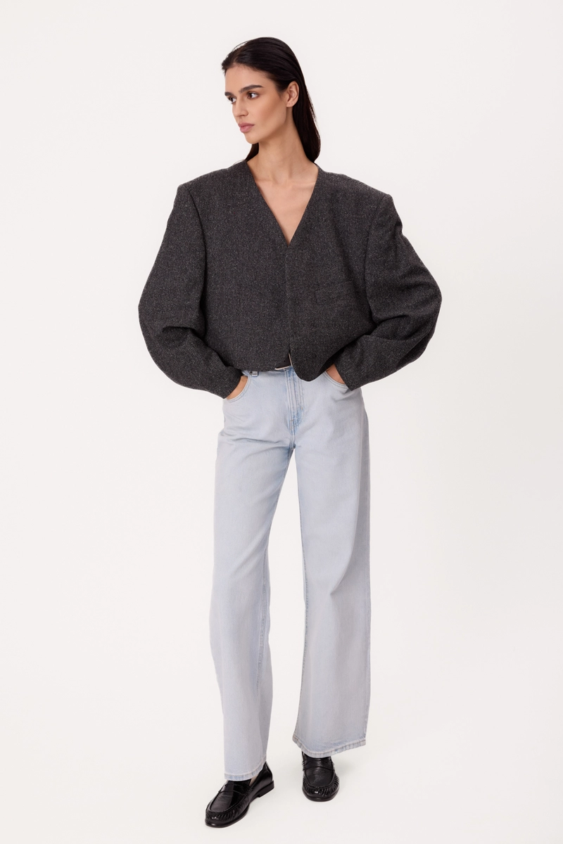 SHORT STRAIGHT GRAY REGULAR HERRINGBONE JACKET