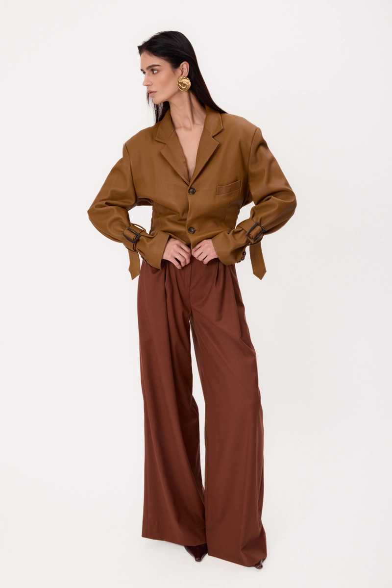 SHORT WAISTED CARAMEL REGULAR LEATHER JACKET