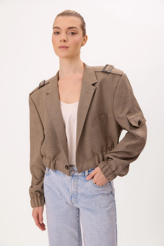 BRĄZOWA KRÓTKA PROSTA MARYNARKA Z WIĄZANIAMI