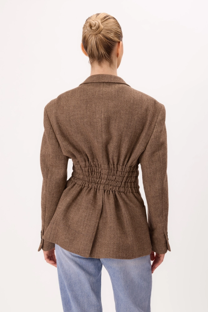 DŁUGA JASNOBRĄZOWA TALIOWANA MARYNARKA W JODEŁKĘ MODEL No4