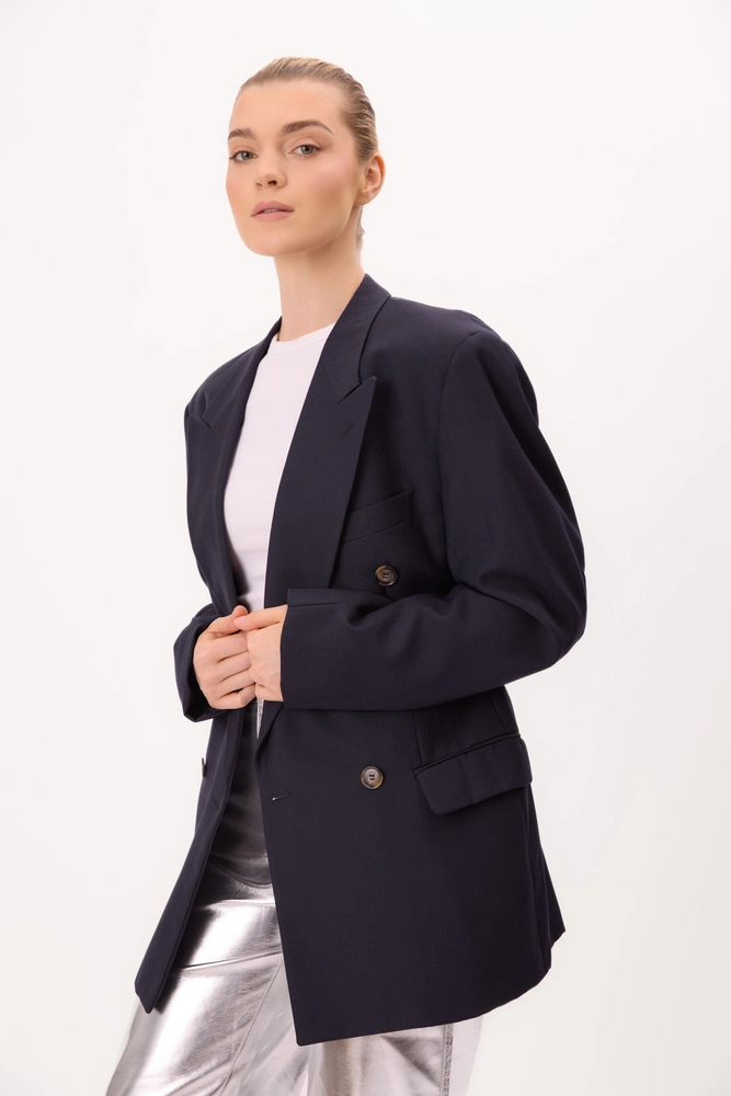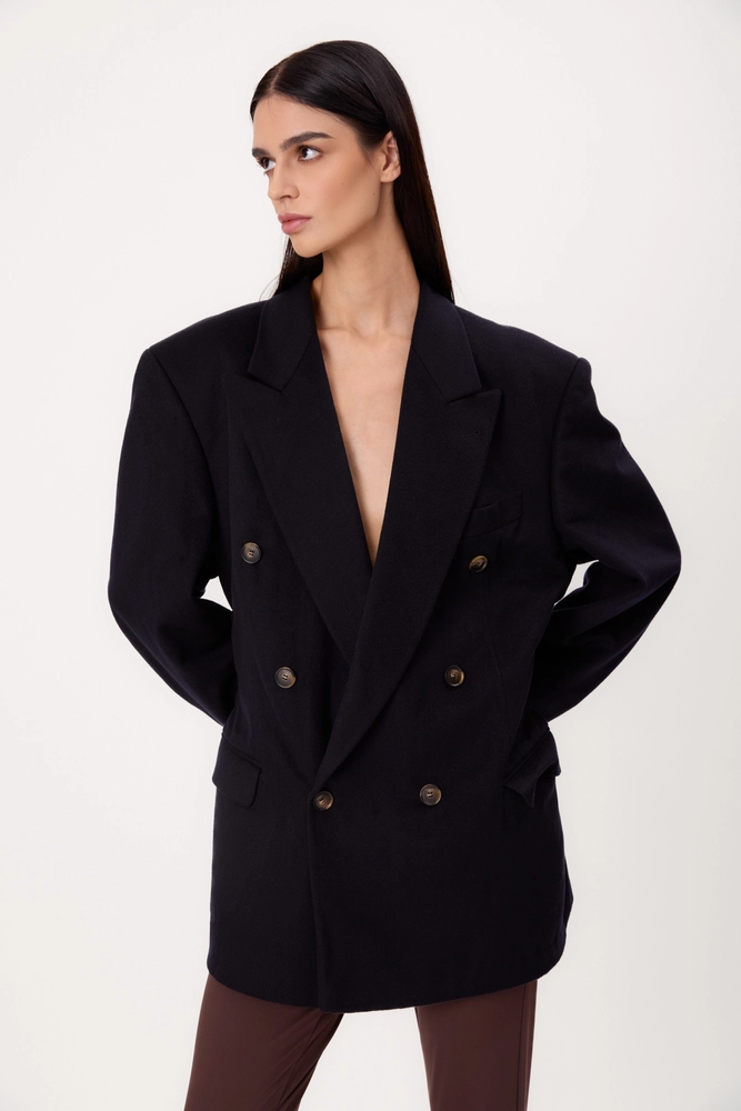 DŁUGA DWURZĘDOWA GRANATOWA KASZMIROWA MARYNARKA MODEL No4