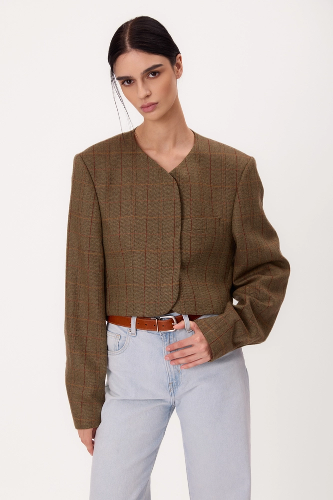 KRÓTKA PROSTA ZIELONA MARYNARKA TALL W CZERWONĄ I POMARAŃCZOWĄ KRATĘ MODEL No9