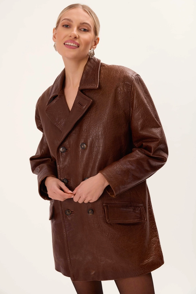 DŁUGA BRĄZOWA SKÓRZANA MARYNARKA