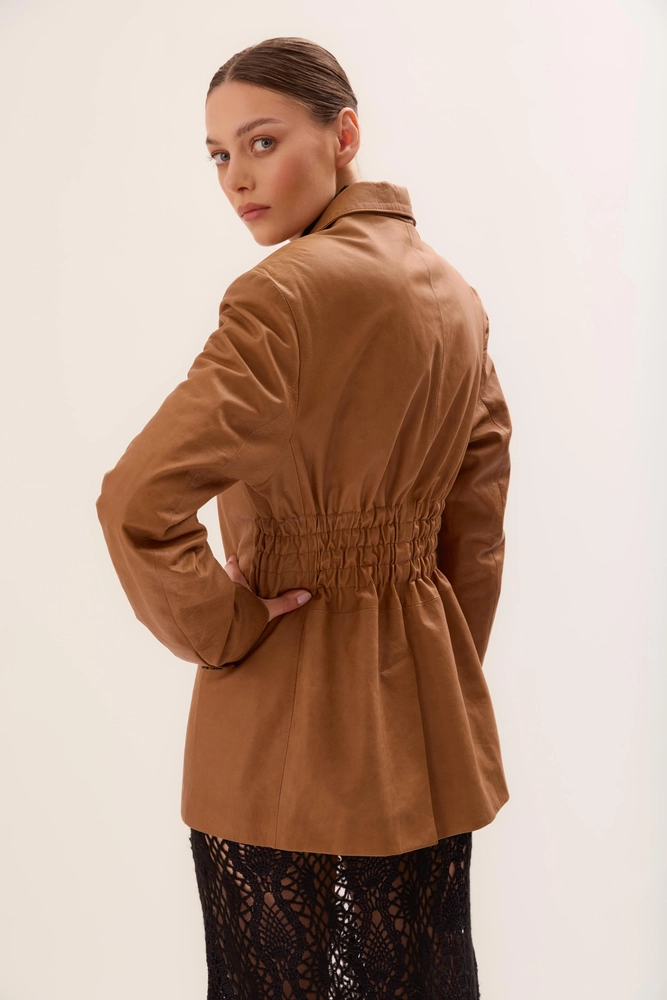 DŁUGA KARMELOWA KURTKA SKÓRZANA MODEL No2