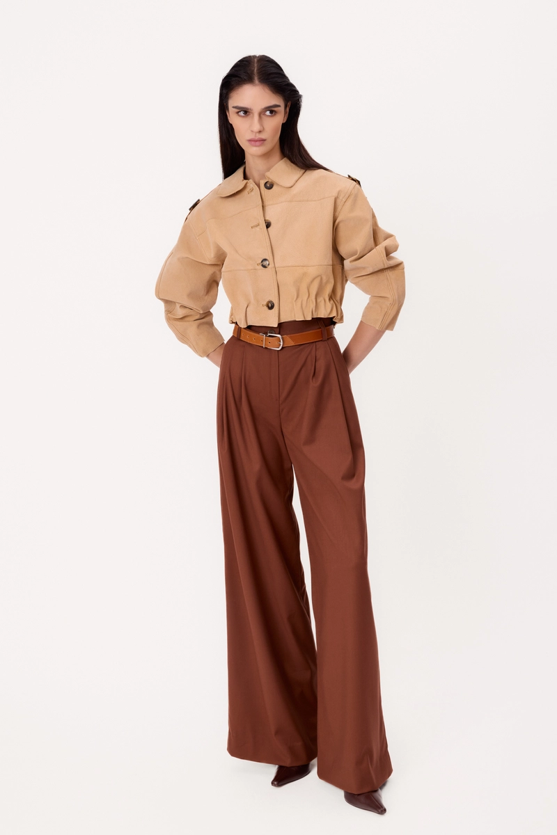 BEŻOWA ZAMSZOWA SKÓRZANA RAMONESKA PETITE W KROJU BOMBER