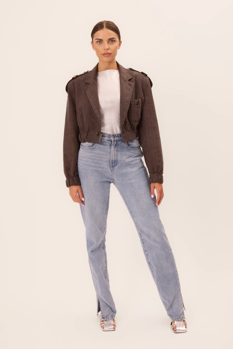 BOMBERKA W KOLORZE BRĄZOWEGO DENIMU W DELIKATNY PRĄŻEK