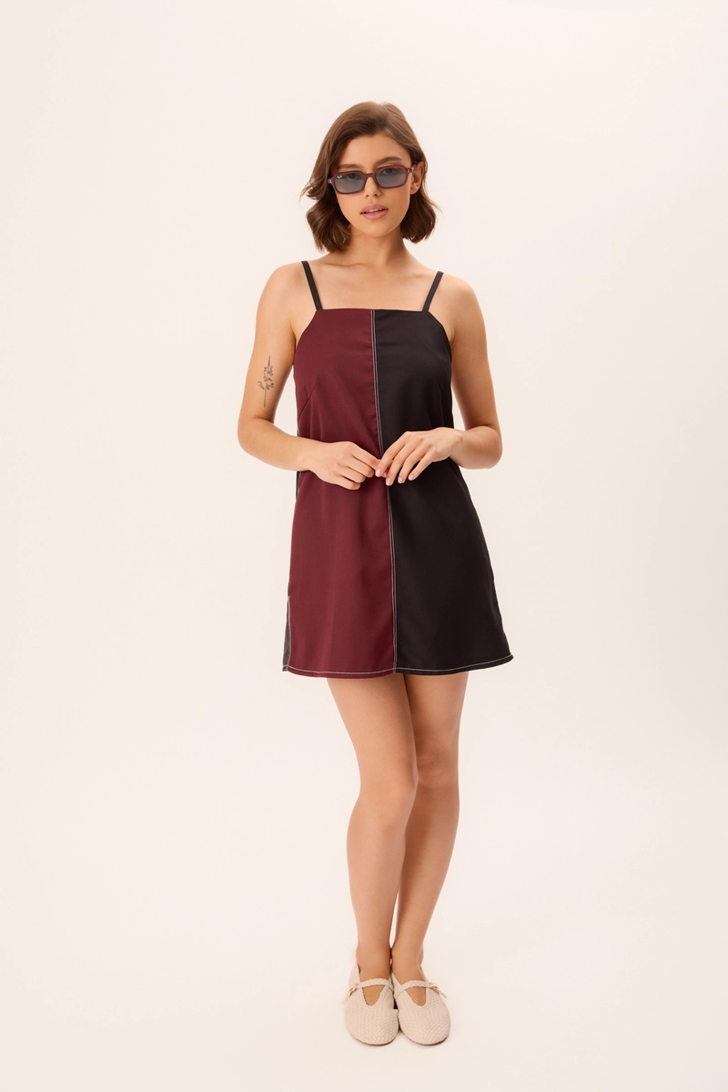 BORDOWA CZARNA KRÓTKA PROSTA KROJEM DWUKOLOROWA SUKIENKA