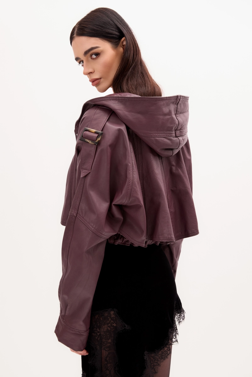 BORDOWA KURTKA SKÓRZANA Z KAPTUREM