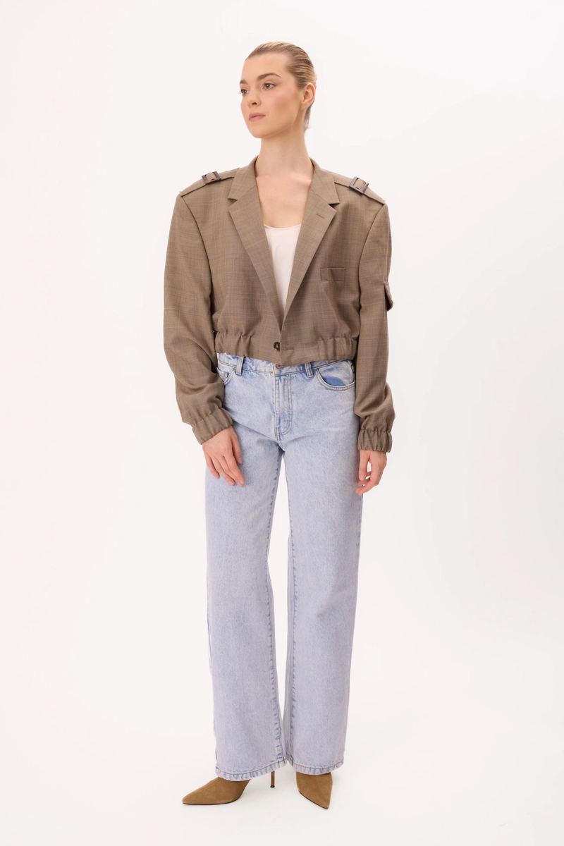 CIEMNOBEŻOWA WEŁNIANA KURTKA BOMBERKA Z PAGONAMI