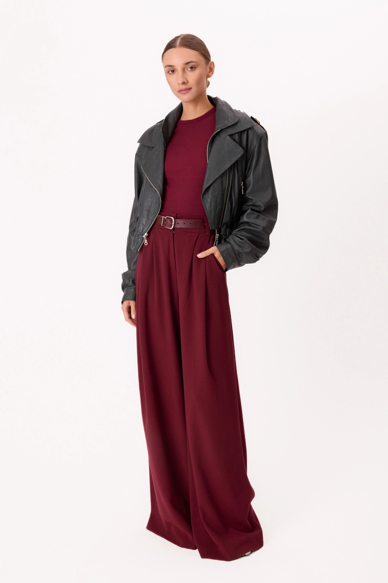 Ciemnozielona, krótka ramoneska VINNCI to unikatowy model z drugiego obiegu – odnowiony i przerobiony z dbałością o każdy detal, by połączyć klasyczną formę z wyrazistym, współczesnym krojem. Wykonana z naturalnej skóry, wyróżnia się szeroką gumą w talii, pagonami oraz podwójnym zamkiem, które nadają jej charakterystyczną, nowoczesną linię. Precyzyjne wykończenia podkreślają rzemieślniczą jakość, tworząc ponadczasowy element garderoby w duchu świadomej mody.