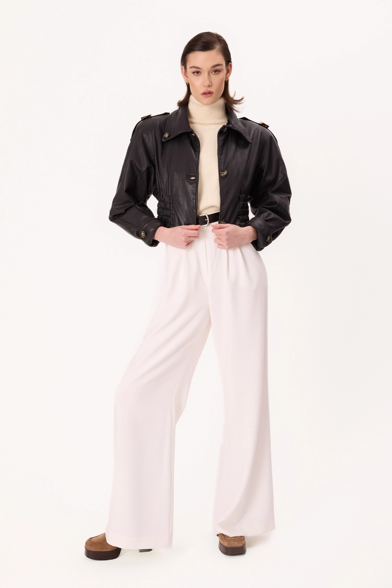 CZARNA TALIOWANA KRÓTKA KURTKA SKÓRZANA