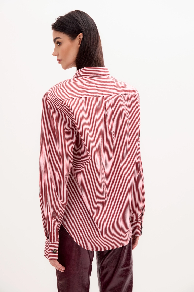 CZERWONA KOSZULA W PRĄŻEK Z MOCNYMI RAMIONAMI I ODPINANYMI PODUSZKAMI