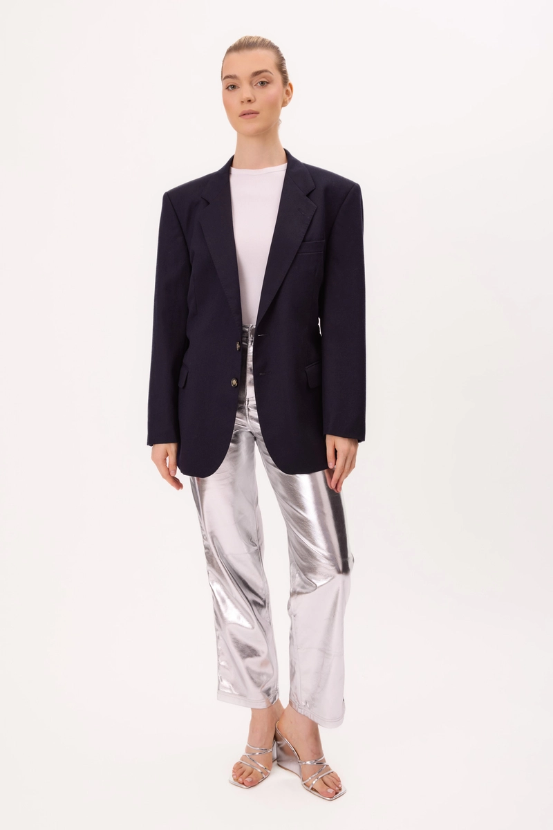Ta wyjątkowa marynarka z drugiego obiegu została starannie odświeżona i przekształcona w ponadczasowy element garderoby. Dzięki szlachetnemu składowi materiałów zachwyca nieskazitelnym wyglądem przez lata, pozostając synonimem stylu i jakości.