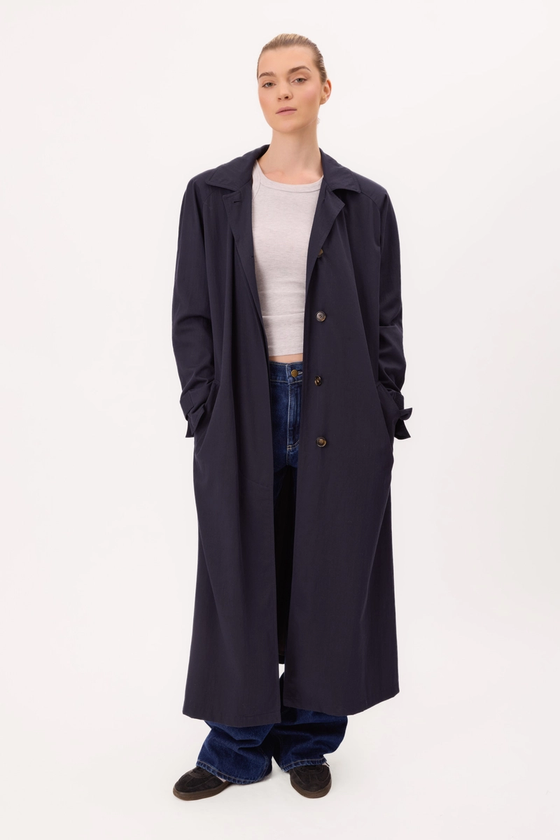 DŁUGI GRANATOWY ZWĘŻANY W TALII TRENCH