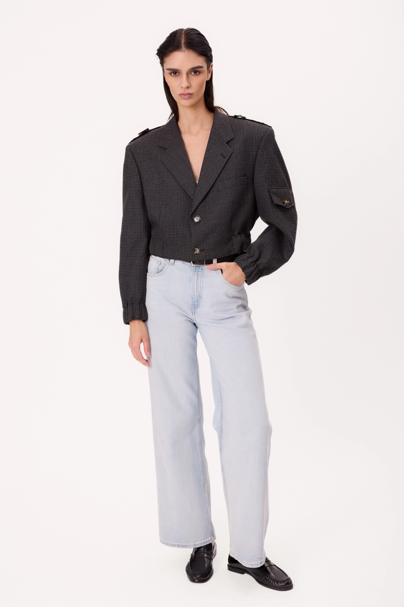 GRAFITOWA KURTKA PETITE BOMBERKA W KRATKĘ Z PAGONAMI