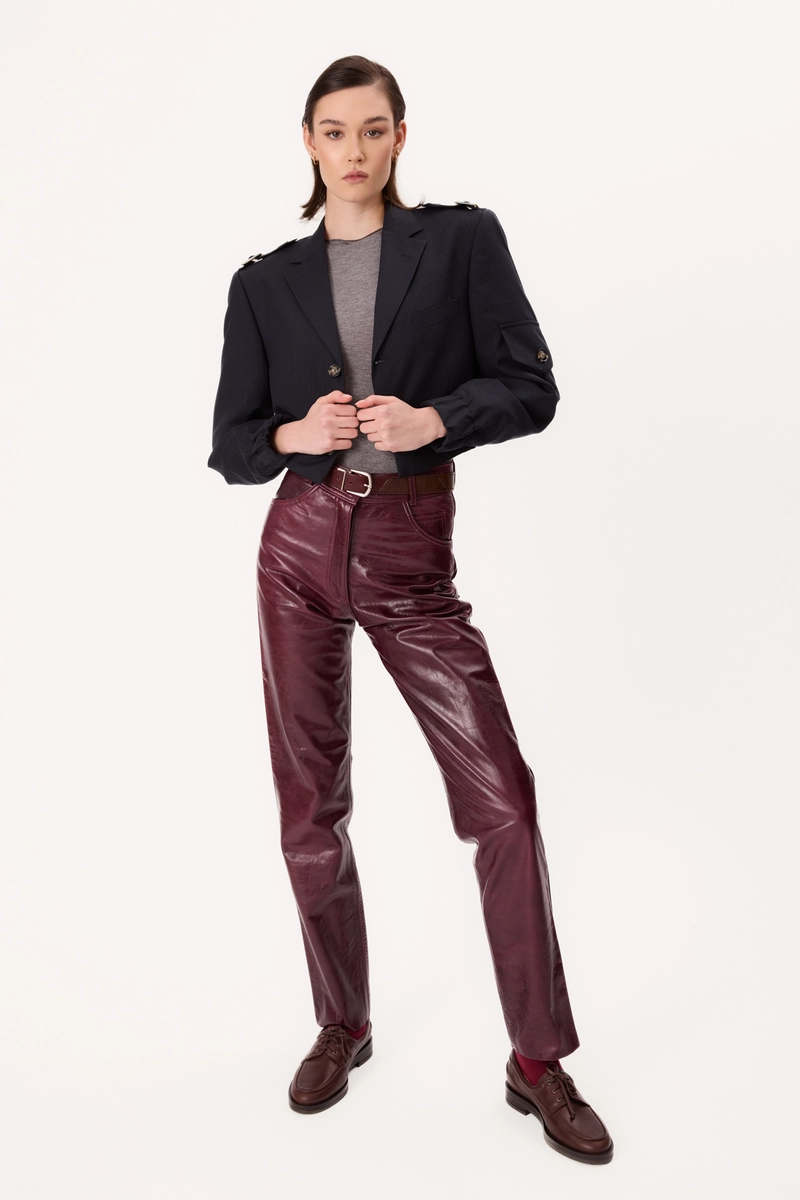 Granatowa, krótka kurtka bomberka w delikatny prążekto upcyclingowy projekt stworzony z męskiej marynarki. Przekształcona i przerobiona z dbałością o każdy detal, łączy klasyczną elegancję z nowoczesnym charakterem. Szeroka guma w talii i rękawach, szerokie ramiona, pagony oraz logowane guziki nadają jej wyrazistości i ponadczasowego stylu. Unikatowa i stylowa, stworzona z myślą o świadomej modzie i indywidualnym charakterze.