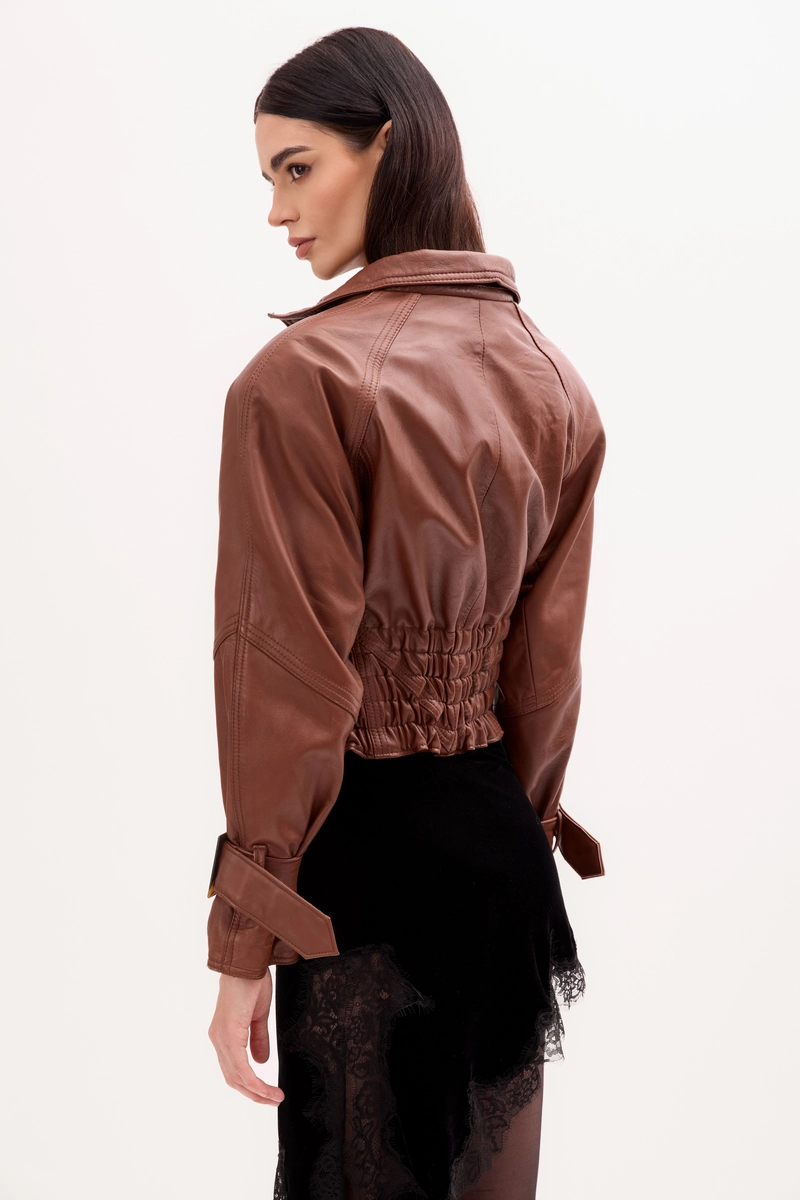 KAMELOWA SKÓRZANA KURTKA Z KLAMRAMI