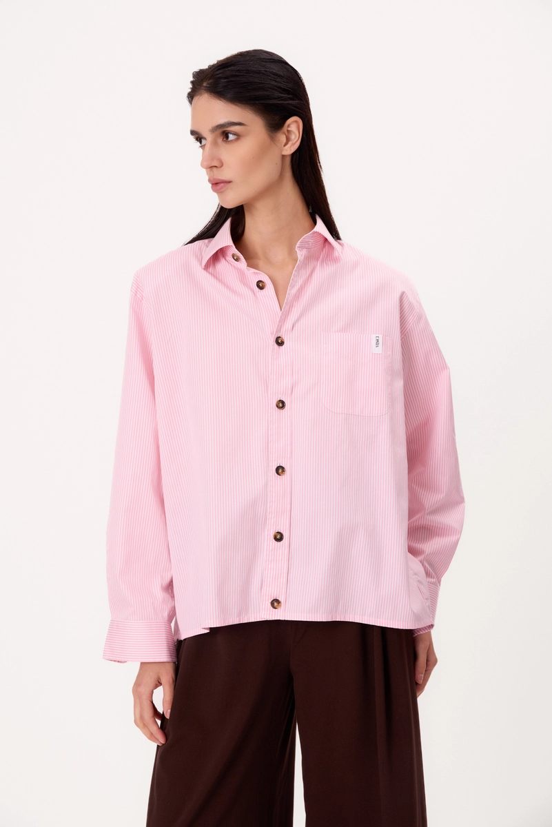 RÓŻOWA REGULAR KOSZULA OVERSIZE W PASKI Z SZEROKIMI ODPINANYMI PODUCHAMI