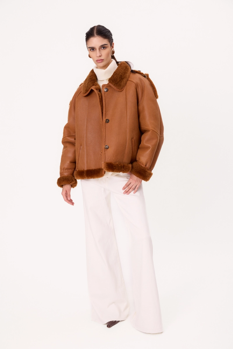 RUDY KOŻUCH NATURALNY Z BRĄZOWYM FUTREM