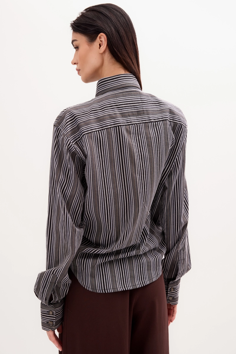 SZARA KOSZULA W PRĄŻEK Z MOCNYMI RAMIONAMI I ODPINANYMI PODUSZKAMI